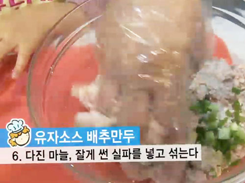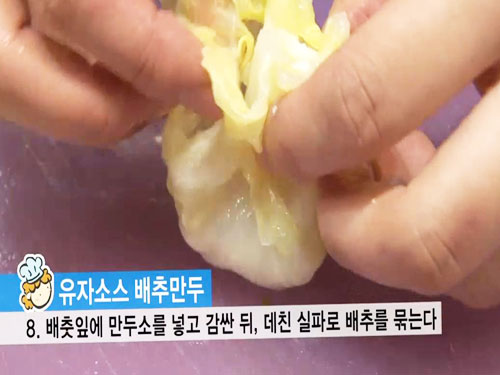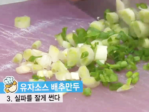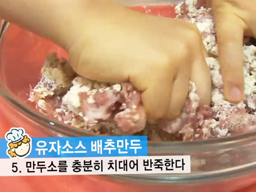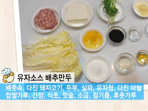 잘 먹지 않는 어린아이들의 안성맞춤 요리인 유자소스 배추만두를 만들어보자.