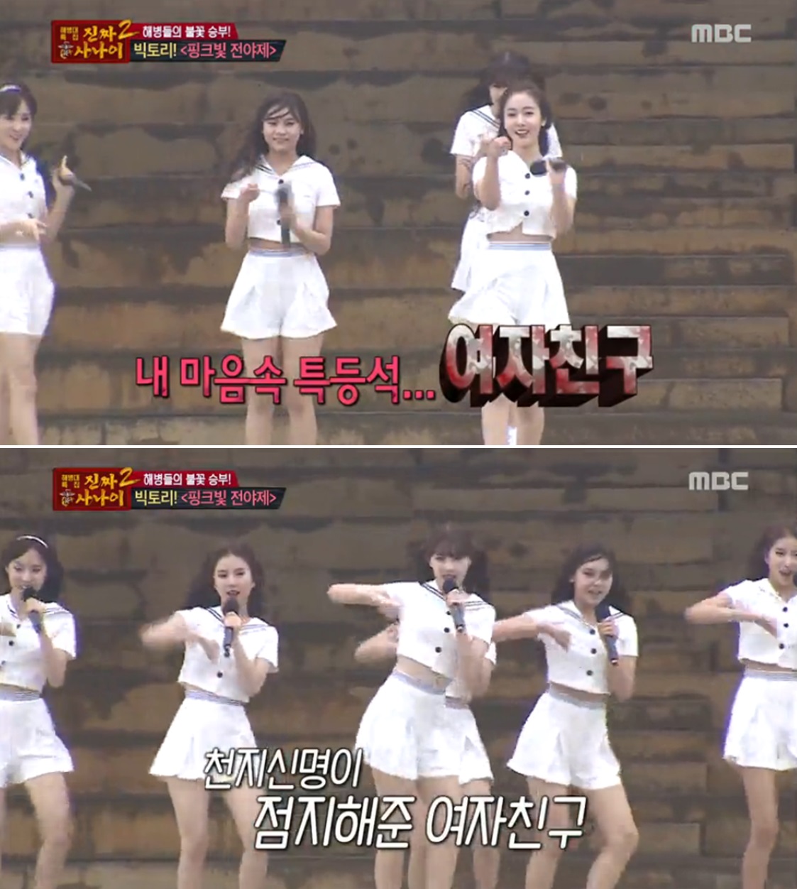 31일에 방송된 MBC 예능프로그램 <일밤-진짜 사나이>에서는 여자친구 위문공연에 박수와 격한 환호를 보내는 멤버들의 모습이 그려졌다.