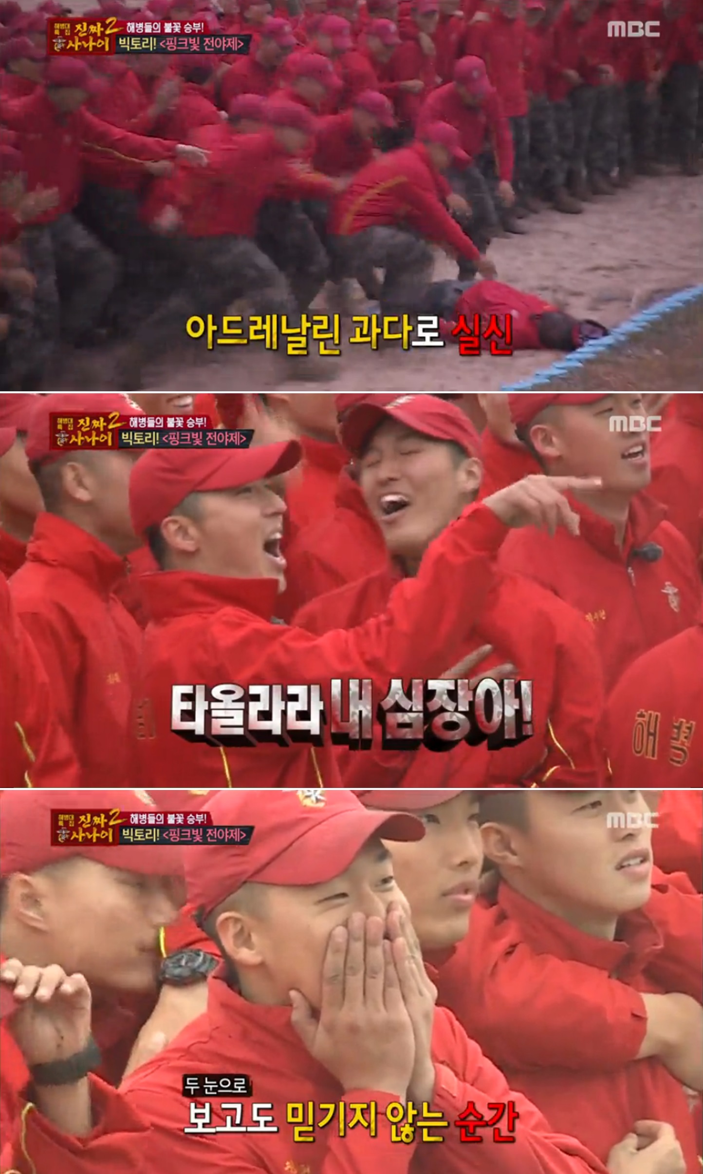 해병대원들은 격한 환호로 여자친구의 등장을 반겼고, ‘오늘부터 우리는’을 따라 부르며 사기충전한 모습을 보였다.