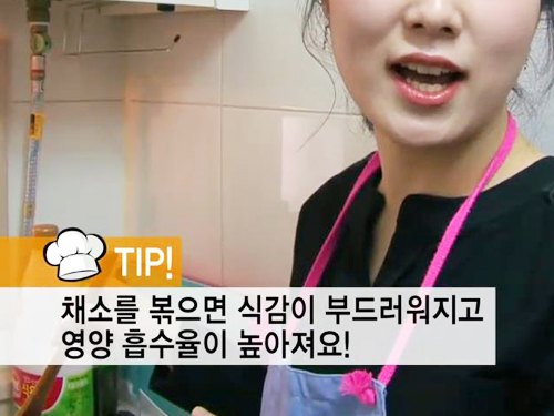 TIP.1 채소를 볶아주면 식감이 부드러워지고, 영양 흡수율이 높아진다.