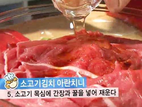 5. 그 다음 소고기 목심에는 간장과 꿀을 넣어 양념이 잘 베이도록 재워준다.