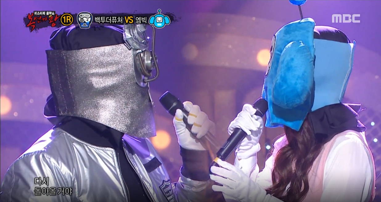 단 세 표 차이로 승패가 갈린 대결의 결과는 '백투더퓨처'의 승리였다. 이에 '엠빅'이 '루비'를 열창하던 중 가면을 벗어 정체를 공개했다.