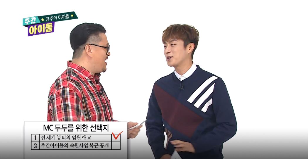 이날 MC 데프콘은 윤두준에게 “돈사돌(정형돈을 사랑하는 아이돌)로 나왔는데, 형돈이가 좋아하는 애교를 보여달라”고 요청했다.