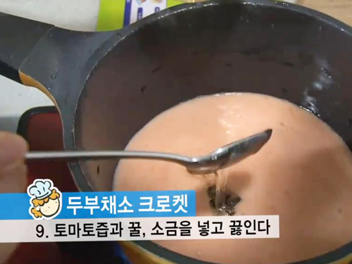 9. 토마토즙과 꿀, 소금을 넣고 끓여준다.