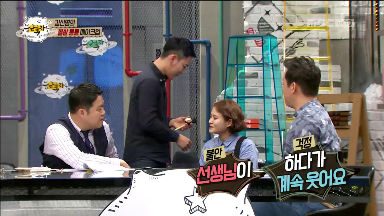 먼저 김신영을 위해 메이크업을 하면서 과학적은 근거를 드는 정상규 씨에 대해 출연진들은 안심했다. 김신영은 불안하다. 하면서 계속 웃으신다”라며 걱정했지만 막상 완성된 모습에 만족스러워했다.