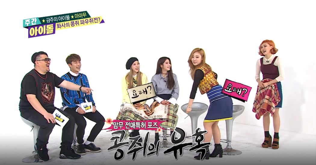 2일 방송된 MBC 에브리원 예능 프로그램 <주간 아이돌> 240회에서는 신곡 ‘넌 is 뭔들’로 많은 사랑을 받고 있는 그룹 마마무(솔라, 문별, 휘인, 화사)가 ‘금주의 아이돌’ 게스트로 출연했다. 또한, 비스트의 윤두준이 정형돈을 대신해 특별 MC로 나섰다.