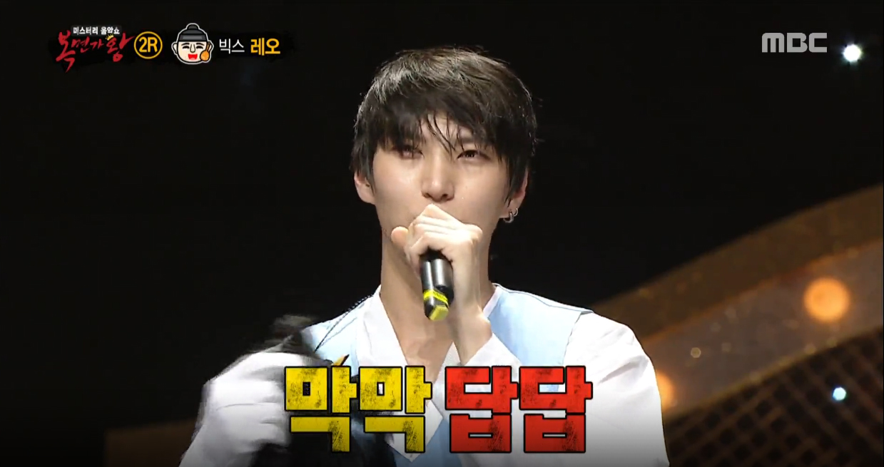 여성 판정단의 환호를 받으며 가면을 벗은 레오는 "데뷔하고 나서 처음으로 느끼는 감정"이라며 벅찬 심정을 전했다. 이어 레오는 "빅스는 노래도 음악도 좋아한다는 것을 보여주고 싶었다"며 출연계기를 밝혔다.