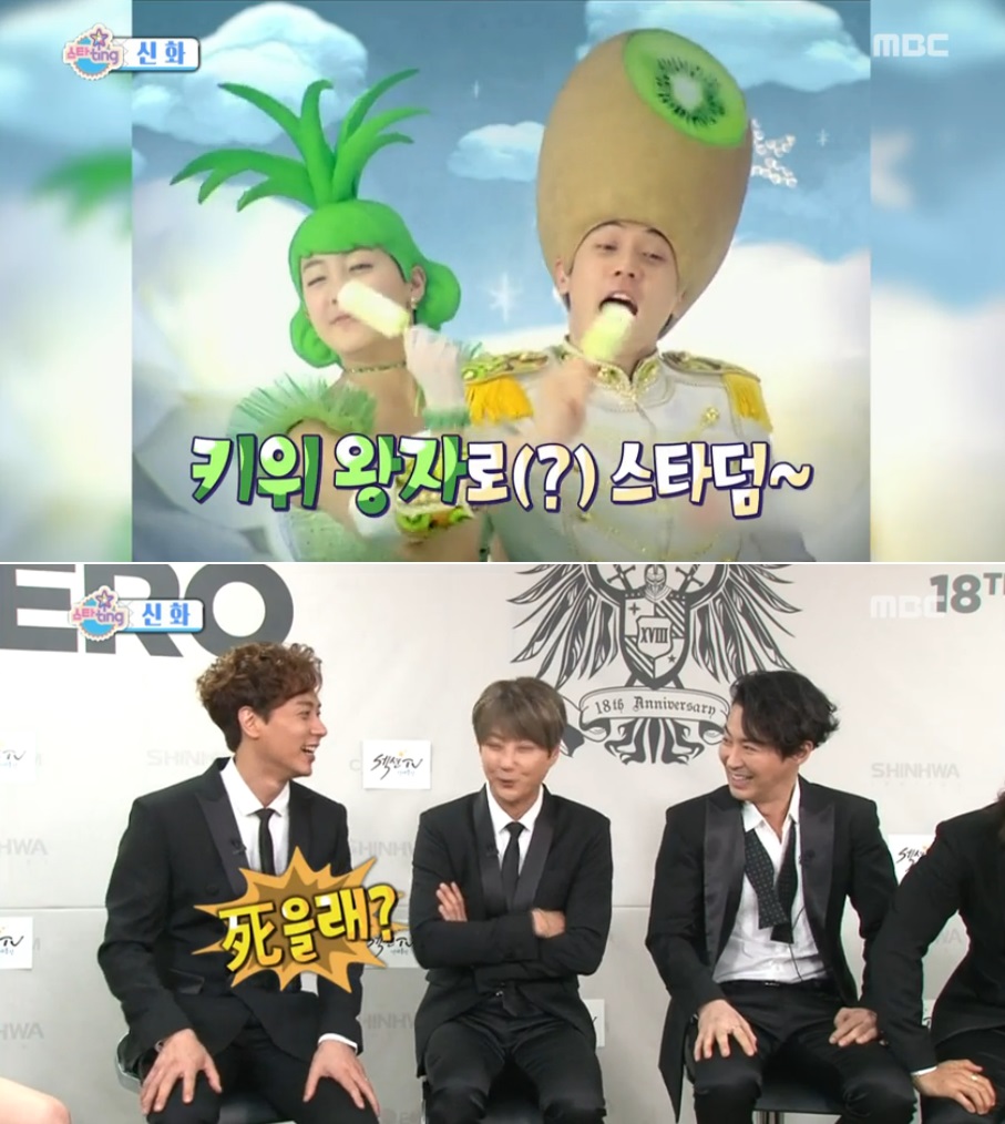 이어 김동완이 “에릭은 시간이 흐를수록 인기가 상승했고, 민우와 혜성이가 전형적인 아이돌스타일로 인기가 있었다”고 전하며 “엔디는 키위로...”라며 엔디의 과거사를 들춰내자, 엔디는 “죽을래?”라고 맞서 웃음을 자아냈다.