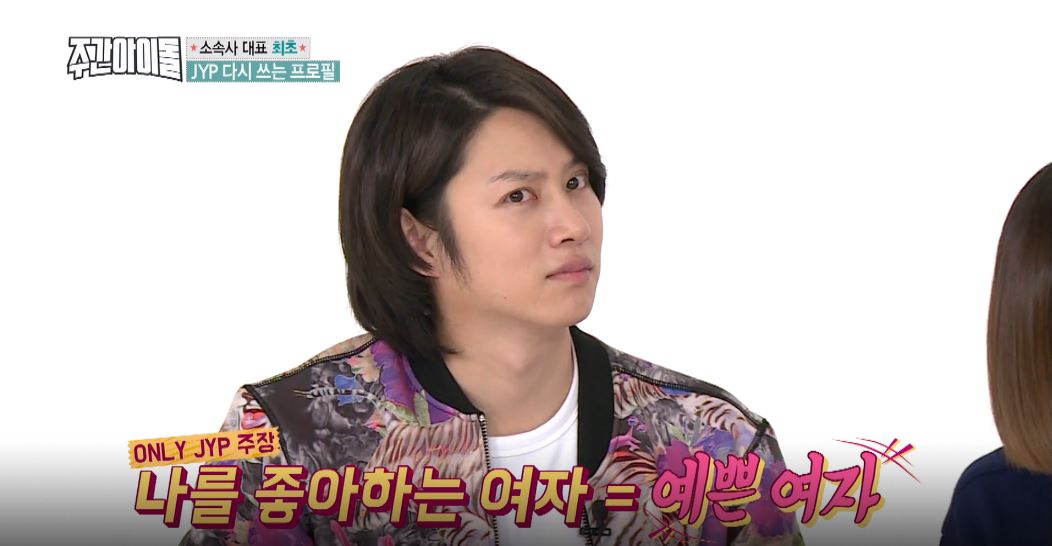이날 데프콘은 박진영의 프로필에 ‘외모에 자신 있음’이 있자, 무슨 의미인지 물었다. 이에 박진영은 “여자 10명 중 9명은 송중기나 조인성을 좋아한다. 나머지 1명이 나를 좋아하는데, 다들 예쁘다”라고 답했다. 이에 김희철이 매우 놀라며 “내가 같이 놀아봤는데?”라고 의혹을 제기해 눈길을 끌었다.