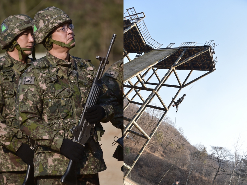 중년 군인들이 15m 헬기레펠에 전격 도전한다.