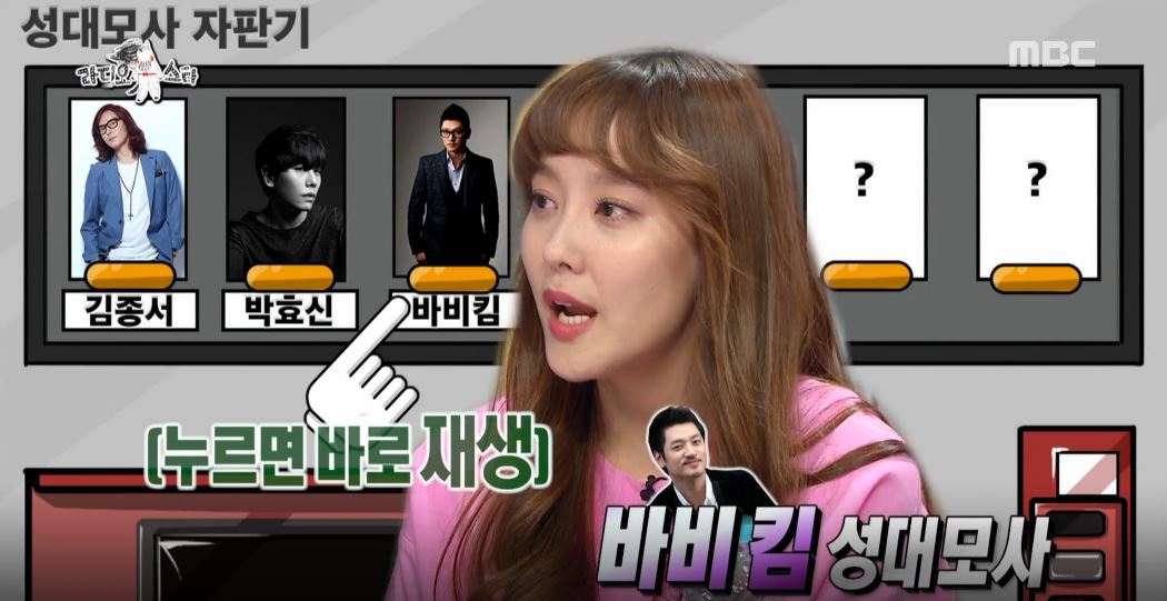 이에 다나가 ‘이승철 노래 부르는 김종서 버전’의 성대모사를 선보였다. 이어 박효신, 바비킴, 임창정을 연이어 완벽 모사해 모두의 환호를 받았다.