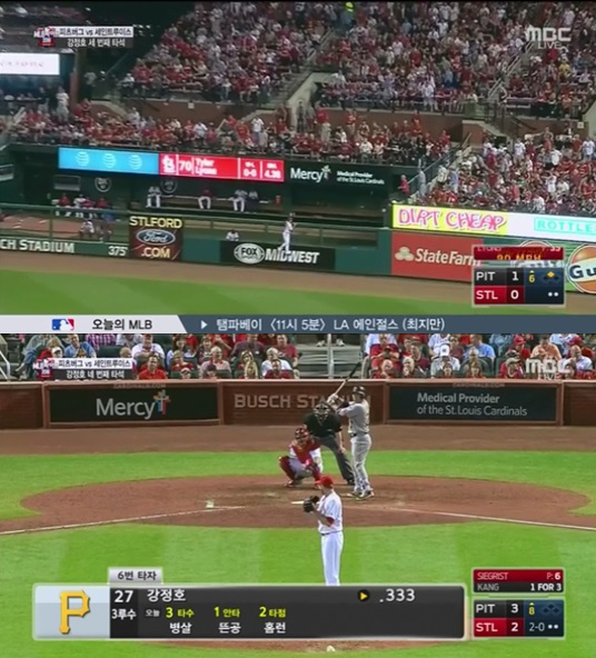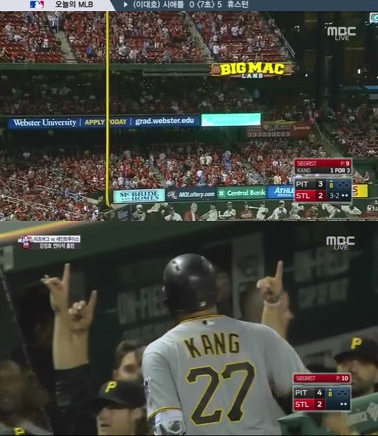 이날 강정호 선수가 홈런을 터트린 순간의 분당 시청률은 각각 4.7%와 5.2%를 기록하며 평균 시청률을 웃돌아 시청자들의 관심을 반영했다.