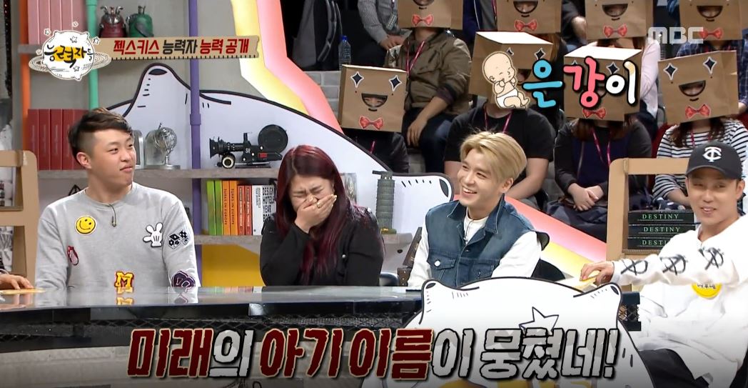 이날 ‘젝스키스 능력자’인 송임선 앞에 강성훈이 깜짝 등장해 그녀를 놀라게 했다. 송임선은 “엄마!”라고 비명을 지르며 털썩 주저앉았다. 이어 눈가가 촉촉해진 그녀는 “당연히 팬이 나올 줄 알았다”며 감격해했다. 송은이는 “진짜 똑같다”며 20년째 한결같은 외모를 자랑하는 강성훈을 보고 감탄했다.
