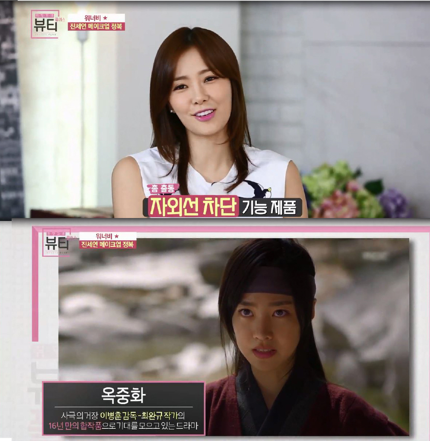 진세연의 담당 메이크업 아티스트가 밝힌 노하우는 다름 아닌 ‘자외선 차단 레이어링’. 그녀는 잦은 야외촬영에도 밝게 빛나는 진세연의 피부를 연출하기 위해 자외선 케어에 신경을 쓰고 있다고 밝히며 <취향저격 뷰티 플러스>를 통해 메이크업 노하우와 파우치까지 모두 공개했다.