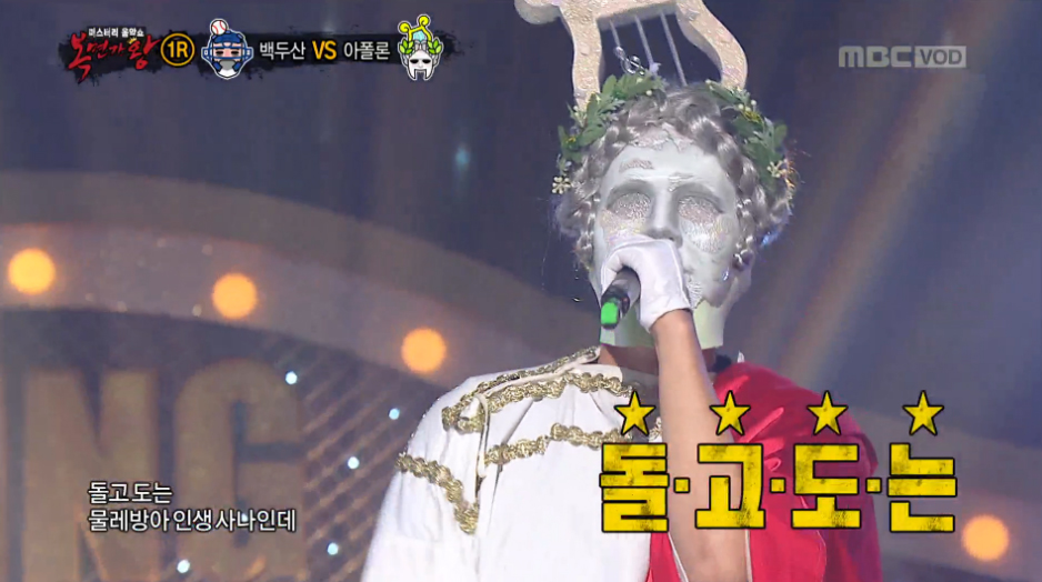 12일(일) 방송된 MBC <일밤-복면가왕>에서는 1라운드에서 ‘전설의 포수 백두산’과 함께 싸이의 ‘챔피언’을 선곡해 멋진 무대를 선보인 ‘합리적 이성 아폴론’의 정체가 공개됐다.