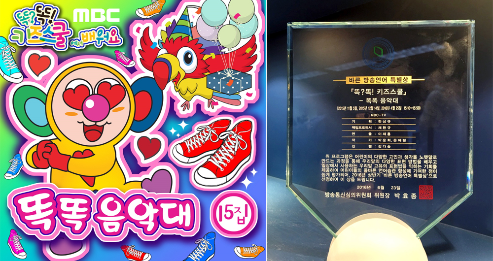 MBC 대표 어린이 프로그램 <똑?똑! 키즈스쿨>의 ‘똑똑음악대’가 2016년 상반기 ‘바른 방송언어 특별상’을 수상했다.