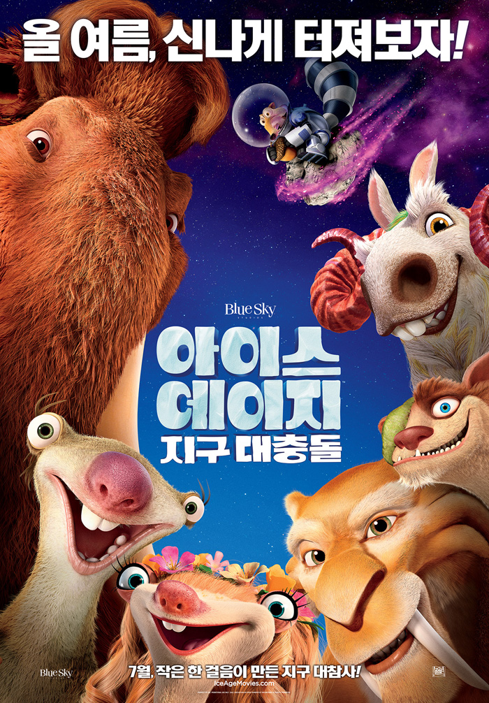 2002년 그 첫 편을 발표한 이후 지금까지 4편 모두 대중의 큰 사랑을 받았던 <아이스 에이지 : 지구 대충돌>도 7월 21일에 개봉한다. 그 동안 빙하기와 해빙기, 공룡시대와 대륙이동을 거치며 관객과 함께 해온 매니, 시드, 디에고와 벅이 시리즈 사상 최초로 우주까지 영역을 확장하여 스토리를 이어갈 예정이라 한다. 스크랫과 도토리가 일으킨 우주 대 참사가 어떻게 펼쳐지며 시리즈의 마지막을 장식할지, 시리즈 총 수익 28억불이라는 엄청난 기록과 함께 애니메이션계의 레전드로 우뚝 선 <아이스 에이지>의 새로운 시리즈에 대한 기대감은 어느 때보다 뜨겁다.