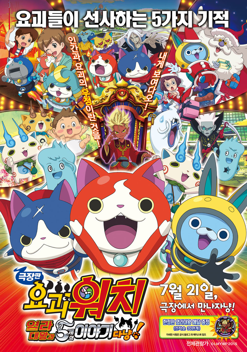 평화롭던 진달래 마을에 이상한 일들이 일어나기 시작하고, 민호를 시작으로 친구들은 갑자기 요괴가 되어 버린다. 요괴와 인간이 서로를 볼 수 없는 최악의 사태까지 벌어지는데, 그때 마다 모습을 드러내는 염라대왕. 과연 염라대왕의 정체는 무엇이고, 어떤 비밀을 숨기고 있는 것일까? 우정을 지키기 위한 요괴들의 대모험 <극장판 요괴워치 : 염라대왕과 5개의 이야기다냥!>은 7월 21일 개봉한다.