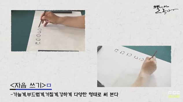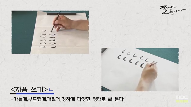 [캘리야 놀자]에서 캘리그래피로 표현할 문구와 분위기에 알맞게 활용 할 수있는 다양한 형태를 살린 캘리그래피 자음쓰기 'ㄱ~ㅅ'편을 전격 공개한다.