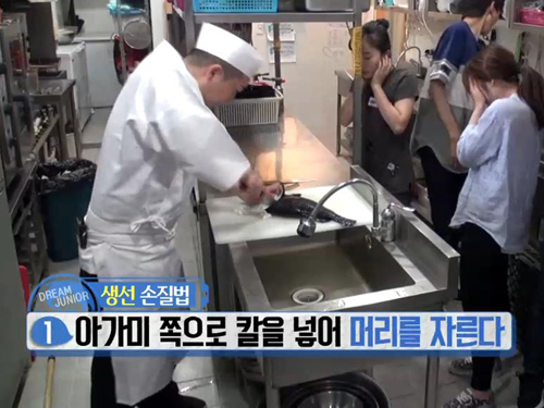 두 번째 조건은 재료 손질하는 생선 손질법인데 팔딱팔딱 움직이는 생선은