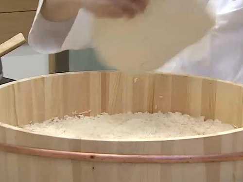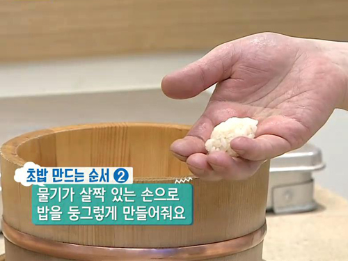넣어야 하고 마지막으로 식초를 넣은 밥을 부채질하면 습기가 빠지면서 밥에 윤기가 생긴다.