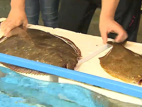 먼저 누구나 좋아하는 대표 횟감 광어, 양식 광어는 배에 얼굴이 있는 반면