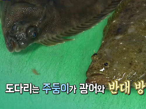 눈이 오른쪽이면 도다리라 하며 도다리는 광어보다 진한 색을 띄고 돌같은 피부를 가졌다.