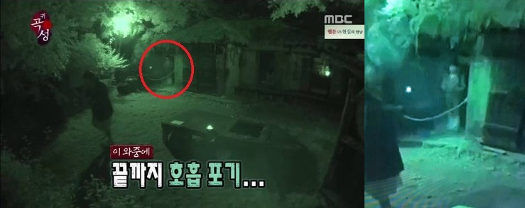 하필 귀신이 나오기 적절했던 시간! 하필이면 귀신의 집! 공포특집으로 마련되었던 ‘귀곡성’ 특집에 진짜 귀신이 등장했다는 한 네티즌의 지적이 온라인을 뜨겁게 달구고 있다. 이 네티즌은 ‘앞 장면에서는 보이지 않는데, 잠깐 나타났다가 사라졌다’며 집 옆에 있는 한 사람의 형상을 증거로 제시했다. 하하가 다녀가는 귀신의 집 옆에 서 있는 이 그림자는 그가 미션인 사진을 가져가기 위해 들어갈 때는 보이지 않다가, 돌아서서 나가는 순간 조용히 구석을 지키며 하하를 보는 것처럼 보여 오싹함을 자아내고 있다.