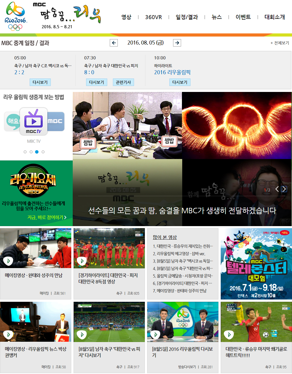 ▲ MBC <2016 리우 올림픽> 홈페이지