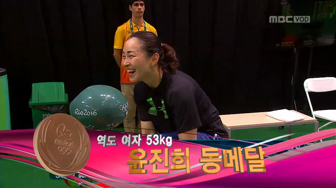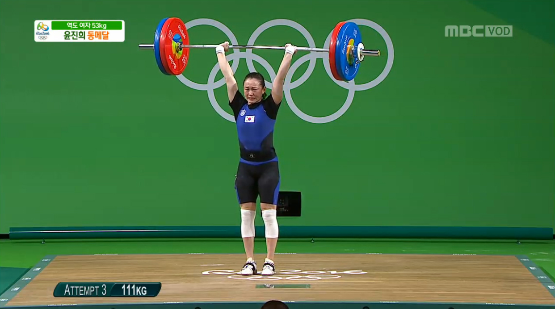 8일 새벽 열린 <2016 리우 올림픽> 여자 역도 53kg 결승에서 한국의 윤진희 선수가 행운의 동메달을 목에 걸었다.