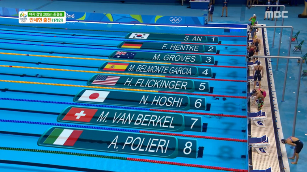 10일 열린 <2016 리우 올림픽> 수영 여자 접영 200m 준결선 2조 경기에서 대한민국의 안세현 선수가 '2분 08초 69'를 기록, 조 7위로 아쉽게도 결선 진출에 실패했다.