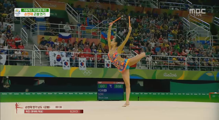 그러나 마지막 곤봉에서는 완벽한 연기로 18.358점을 받아 앞의 두 종목 실수를 만회할 수 있었다.