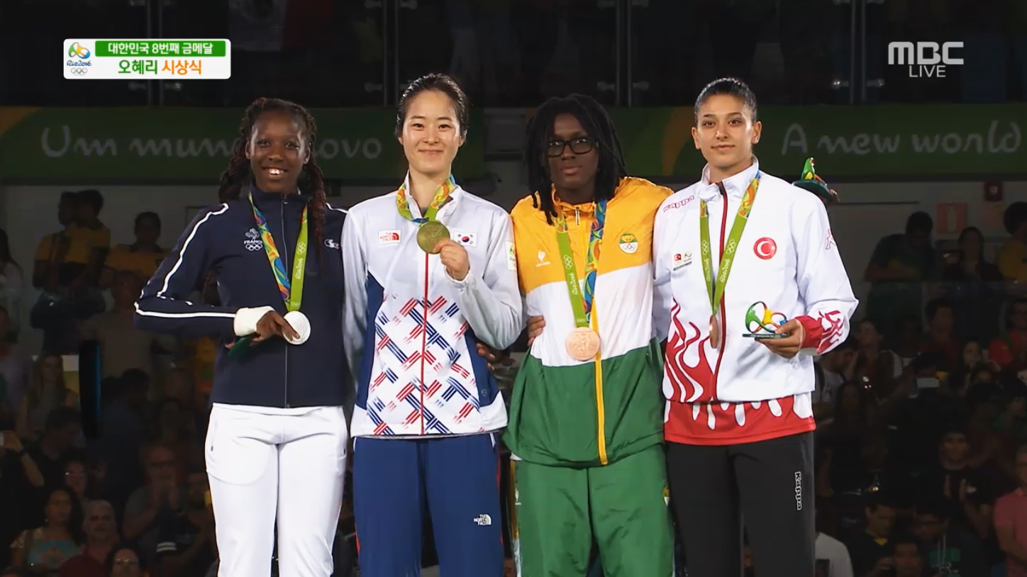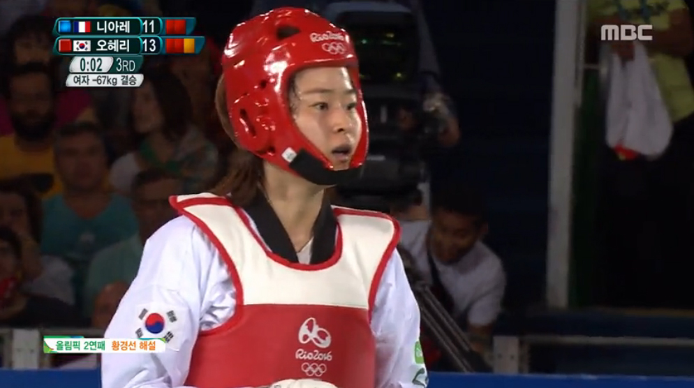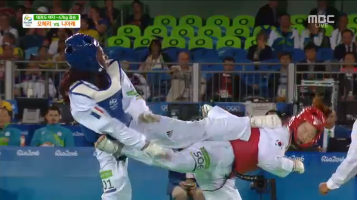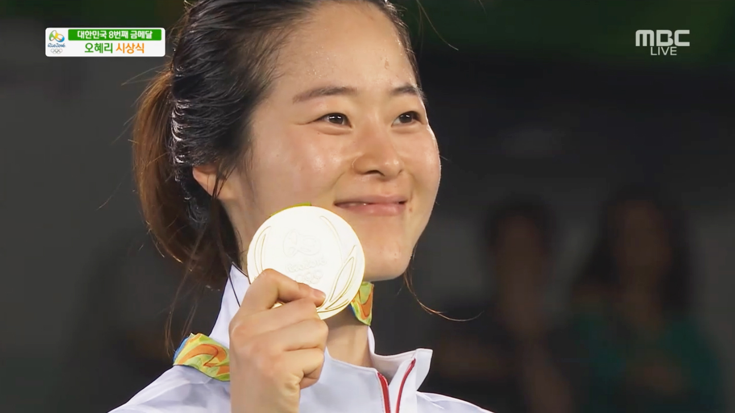 20일 열린 <2016 리우 올림픽> 태권도 여자 67kg 결승전에서는 대한민국의 오혜리가 프랑스의 '하비 니아레'를 1점 차로 꺾고 극적으로 승리하며 대한민국에 8번째 금메달을 안겼다.