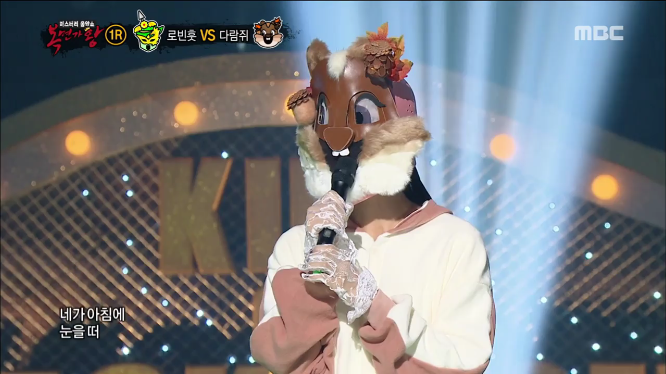 18일 방송된 MBC 예능프로그램 <일밤-복면가왕>에서는 '로빈훗'과 '다람쥐'가 2라운드 진출을 위해 듀엣곡 대결을 펼치는 모습이 그려졌다.