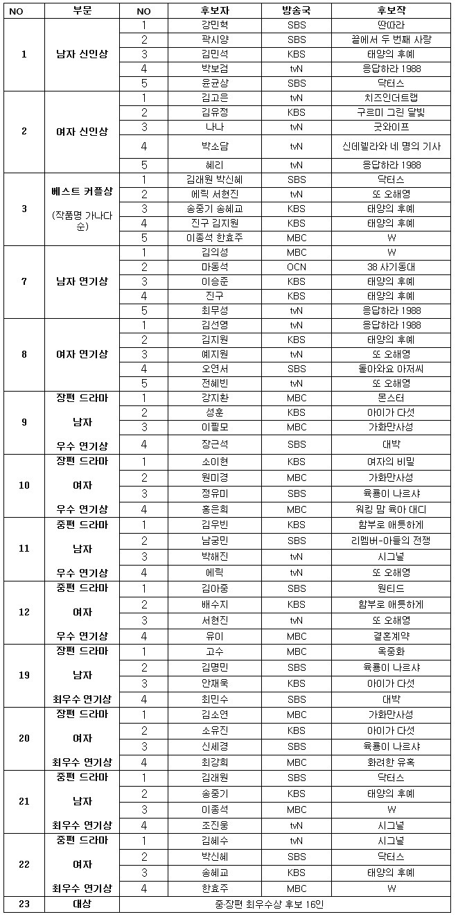특히, 장편과 중편 드라마 최우수 연기상 후보 16인 중 한 명이 대상 수상자로 결정되는 가운데 누구에게 수상의 영광이 돌아갈 지 귀추가 주목되고 있다.