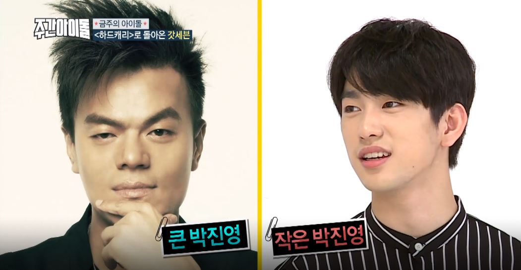 데프콘은 “박진영 PD님과 이름이 같다. JYP 소속사에 ‘박진영’이 둘인데, PD님의 반응이 궁금하다”라고 말했다. 진영은 “표정은 조금 안 좋았다. 그분은 ‘큰 진영’, 난 ‘작은 진영’이다”라고 답해 시선을 모았다. 이때 김희철이 “쌍박이다”라고 말해 웃음을 자아냈다.