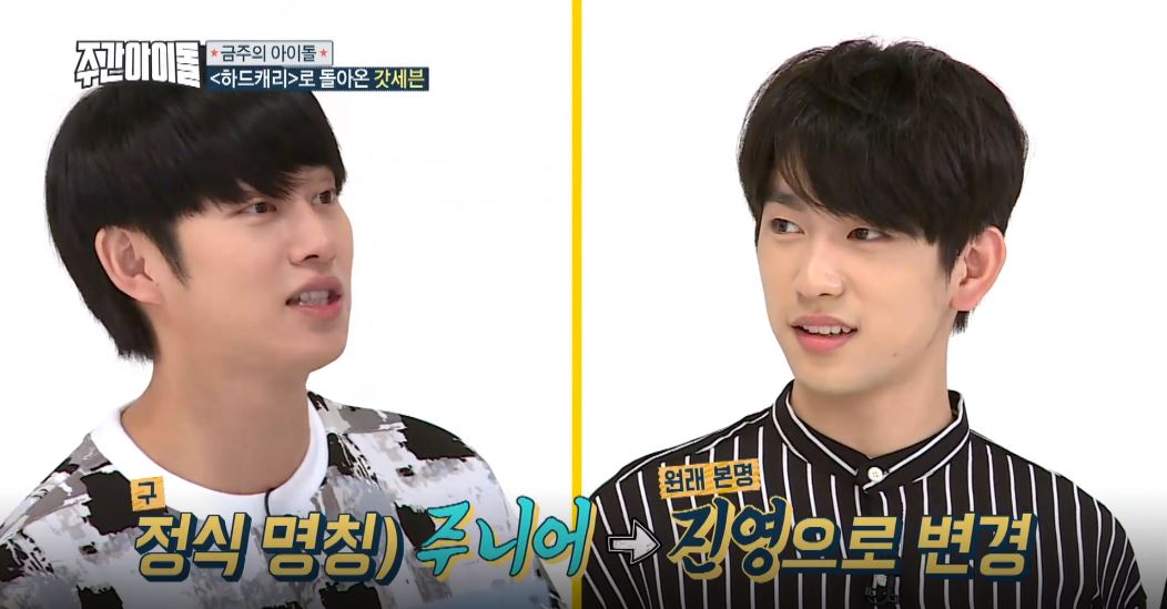 이날 김희철은 “데뷔 3년 차에 갑자기 이름 바꾸는 게 쉽지 않은데, ‘주니어’에서 ‘진영’으로 변경한 이유가 뭔가?”라고 물었다. 이에 진영은 “가족들과 회의한 결과, 본명을 쓰기로 했다”라고 밝혔다.