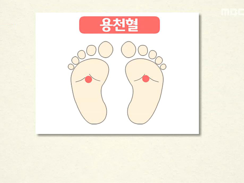 용천혈은 두드려줘도 좋고 또 서있을 때 까치발을 아주 살짝만