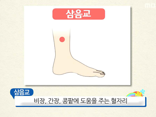 삼음교는 비장, 간장, 콩팥 즉 신장에 도움을 주는 혈자리다.