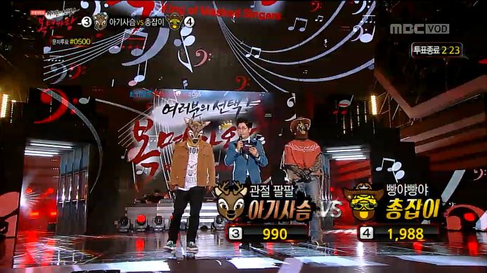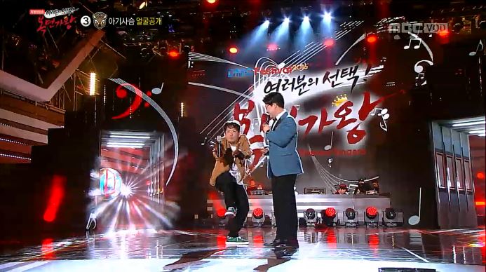 5일 생방송된 MBC 특집 <2016 DMC 페스티벌-여러분의 선택! 복면가왕> 1부에서는 ‘관절 팔팔 아기사슴’과 ‘빵야빵야 총잡이’의 노래 대결이 펼쳐졌다.