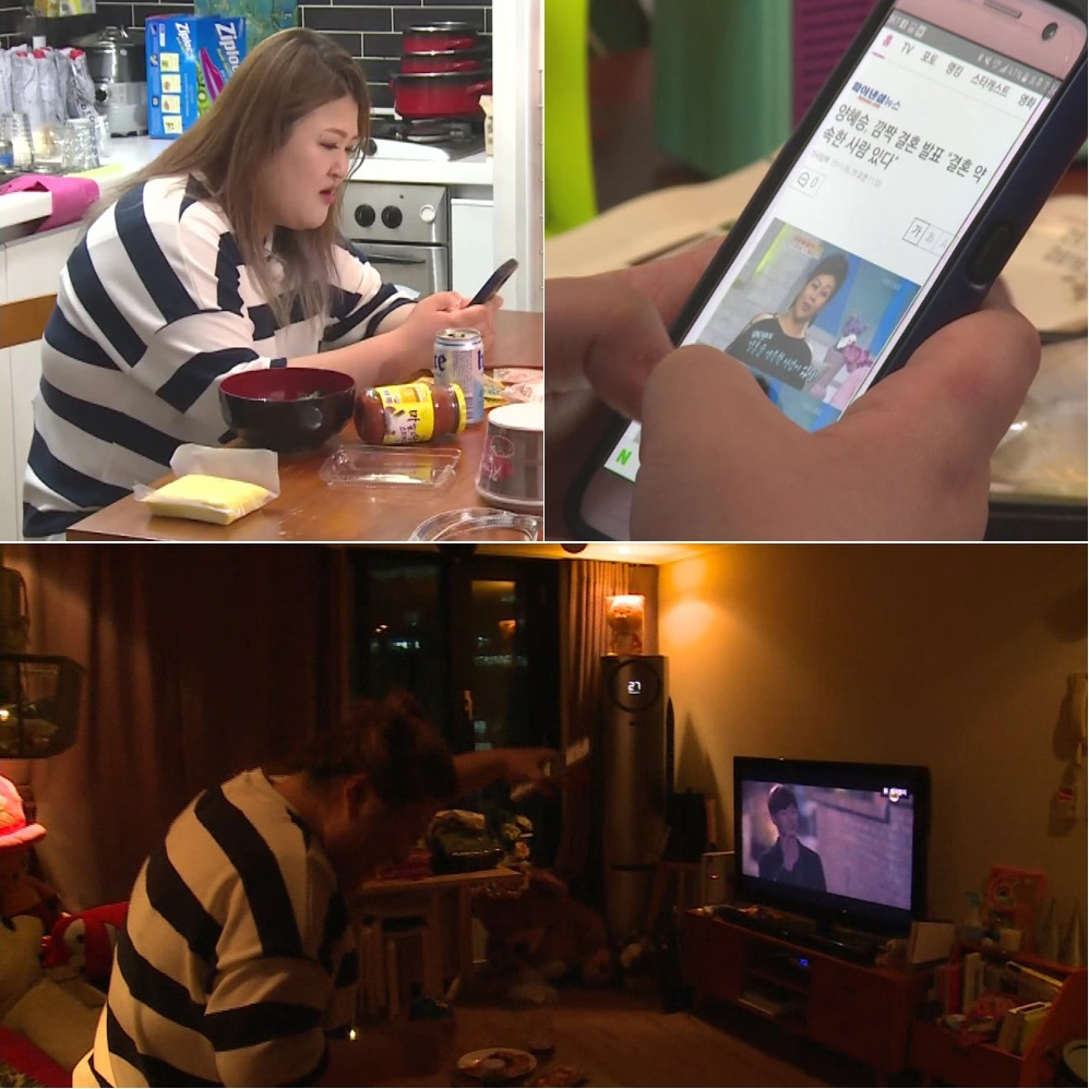 특히 이국주는 마치 싱글들의 주제곡인 ‘화려한 싱글’을 들으며 안주를 준비하던 중 “이분은 이 노래 부르고 결혼했나 안 했나?”라며 인터넷 검색을 했다. 그는 결혼 발표 기사를 확인한 뒤 “어이가 내 뺨을 때려~”라며 “결혼은 미친 짓이야 해놓고 결혼하기 있나?”라고 서운함 마음을 드러냈다고.