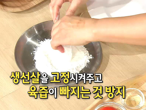 준비한 생선살은 미리 밀가루로 입혀 앞뒤로 굽고 양 옆면들도 노릇하게 굽는다.