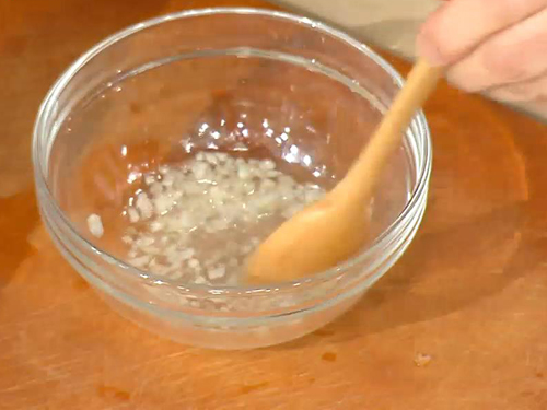 곱게 다진 양파와 식초, 올리고당, 올리브유를 섞어 스테이크 소스를 만든다.