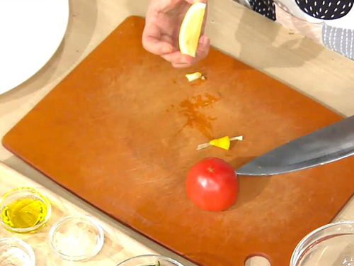 굽는 동안 레몬과 토마토를 먹기 좋게 잘라 준비 후 접시에 예쁘게 담아 논다.
