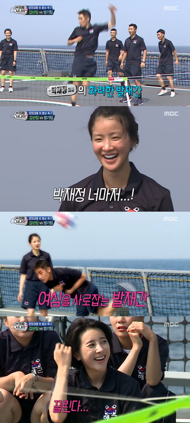 박재정은 발군의 족구실력에 이태성은 “세탁팍트로(?) 수준이다”라며 칭찬했고, 여군들 역시 뜨거운 환호로 응원했다. 입대 후 박재정의 가장 화려한 순간이었다.