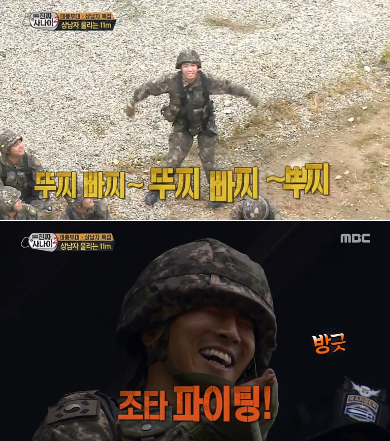 13일(일) 방송된 MBC 예능프로그램 <일밤-진짜 사나이>에서 심형탁이 엉뚱한 모습으로 시청자들의 웃음을 자아내고 있다.