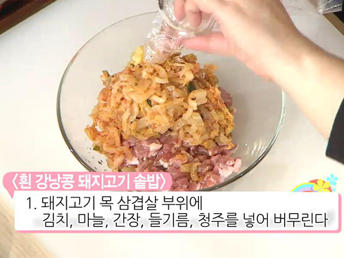 돼지고기 목 삼겹살을 다지고, 다진 김치, 마늘, 간장,