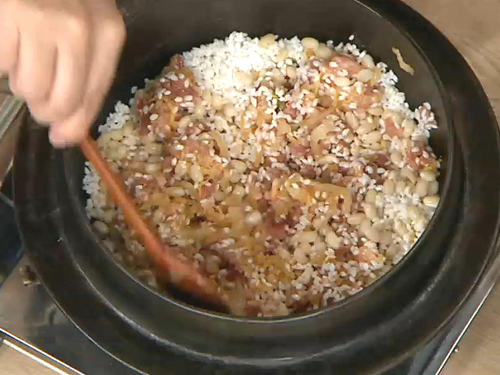 흰 강낭콩과 쌀도 함께 넣어 살짝 볶아주면 씹히는 맛을 더욱 살릴 수 있다.