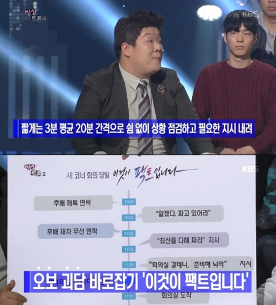 유민상이 자신의 7시간을 해명하기 위해 ‘이것이 팩트입니다’라며 만든 자료는 자칭 ‘오보 괴담’을 바로 잡기 위해 ‘이것이 팩트입니다’라는 코너를 만든 신설한 청와대 공식 홈페이지를 연상시키며 방청객들의 환호를 받았다.