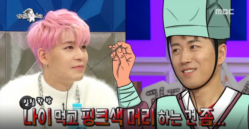 윤종신은 “장수원이 ‘핑크색 머리 하는 건 아닌 것 같다’라고 일침을 가했다고?”라며 물었다. 강성훈은 “나 디스 한 거지?”라며 버럭 화를 냈다. 이어 강성훈은 “나도 하긴 싫었다”라며 억울해했다.